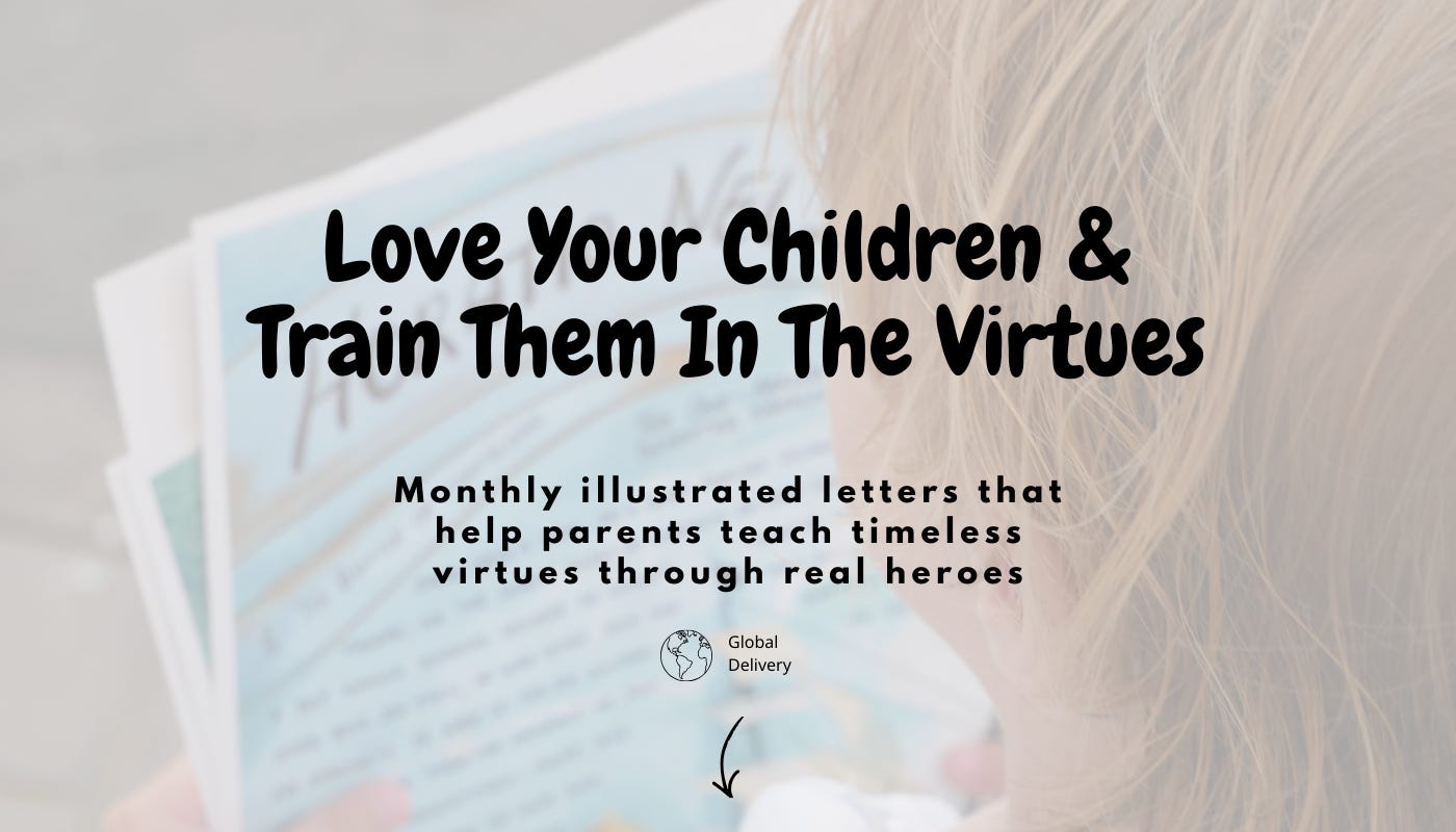 Each month, families receive a beautifully illustrated letter telling the true story of a historical hero — and the virtue they embodied — so children can practise it at home.