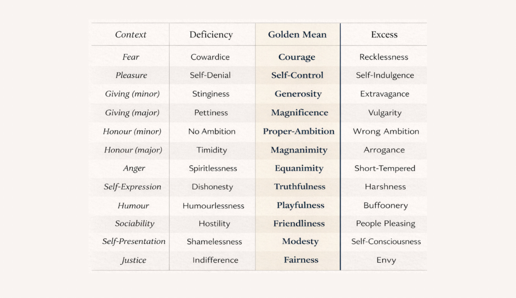the centre shows the virtue as the golden mean