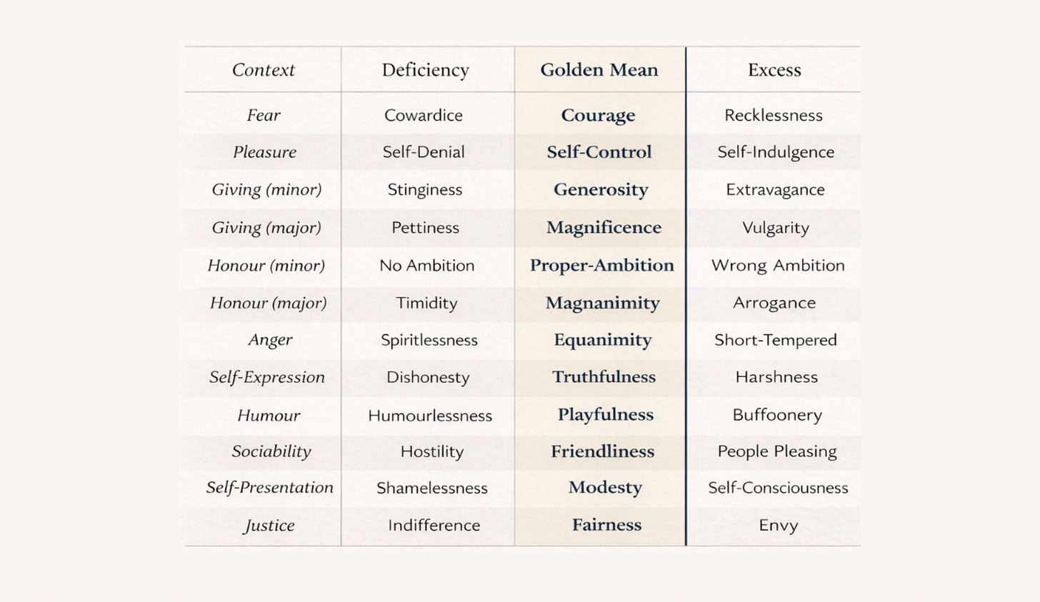 Aristotle described virtue as a mean between extremes.